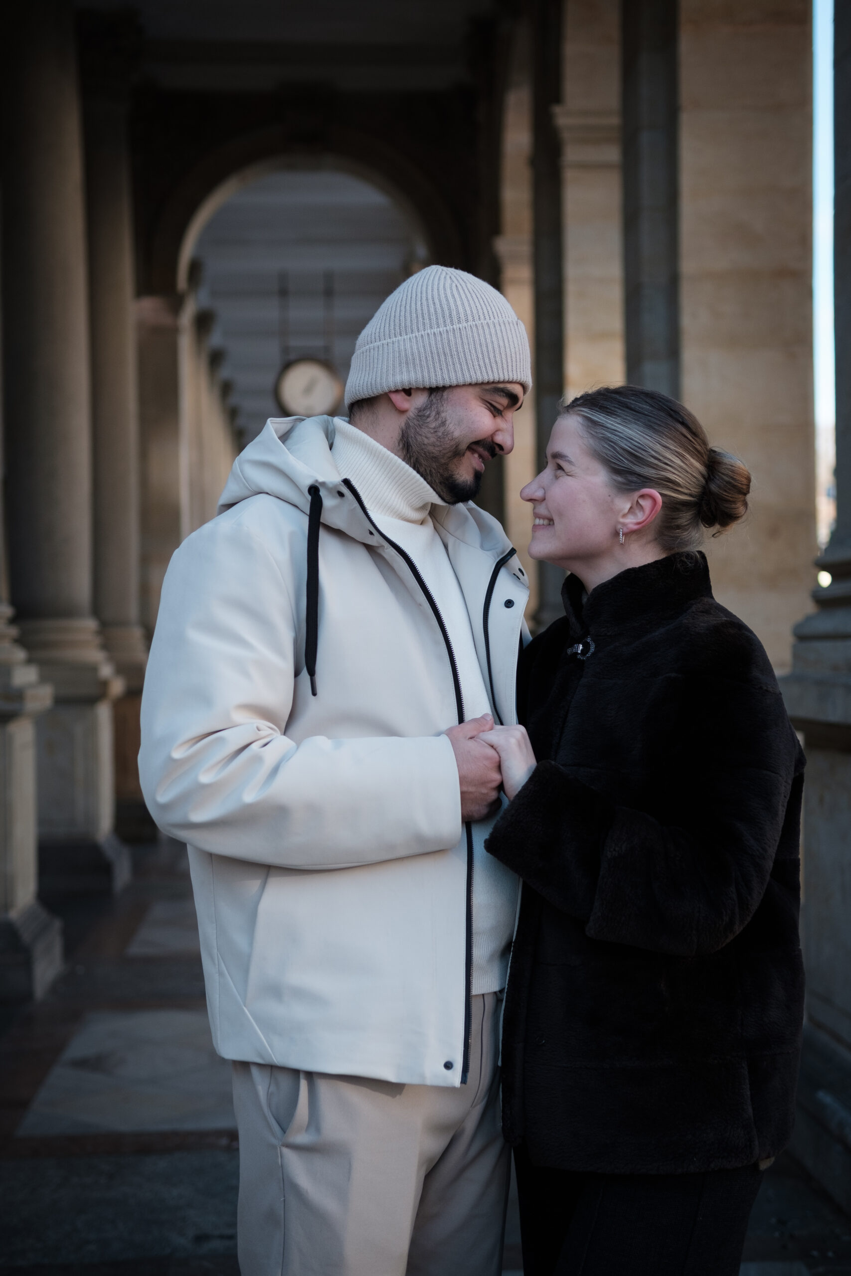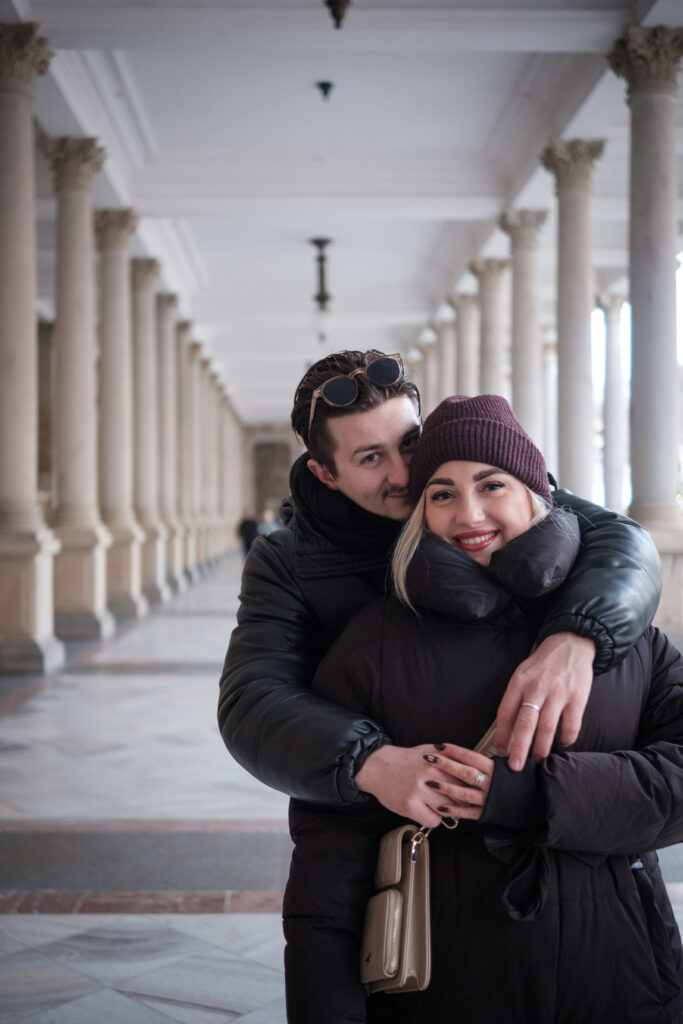 Sun had found it’s way throught the clouds which made a beautiful golden light. Unfortunately it was too bright for the portrait. There was no shade around so I took the picture no matter the light. Klára seemed like a very warm and friendly person.